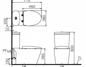 Bản vẽ kích thước CAESAR CD1551 – Bồn cầu 2 khối nắp êm MU237