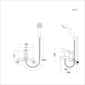 Bản vẽ kích thước CAESAR S433C – Vòi sen tắm nóng lạnh tay 3 chế độ
